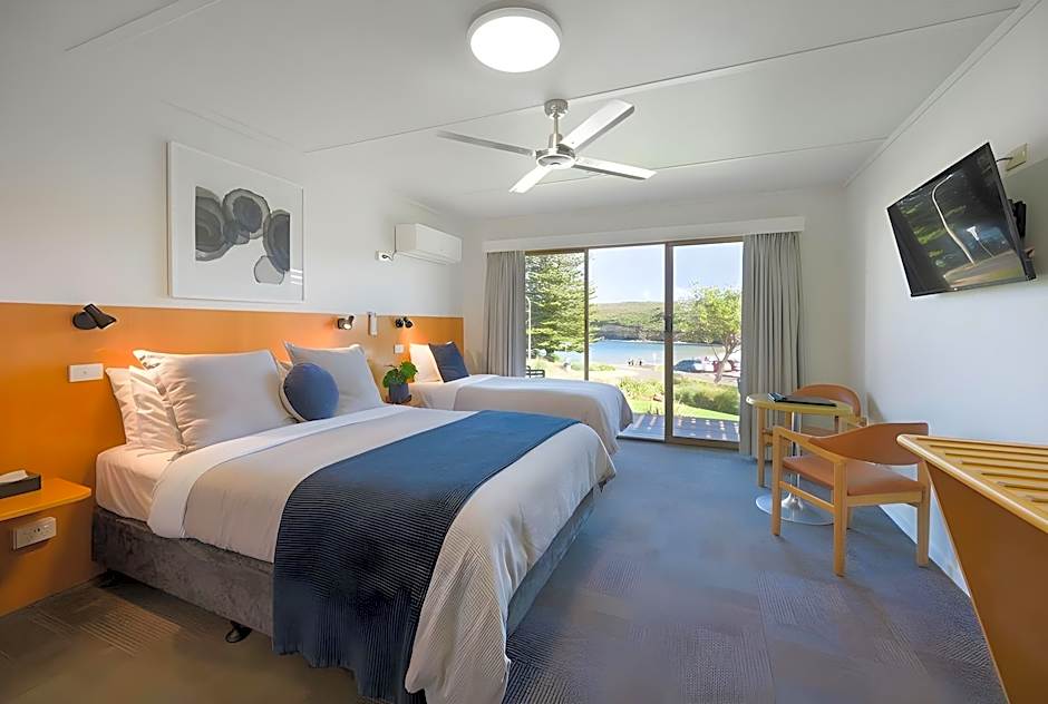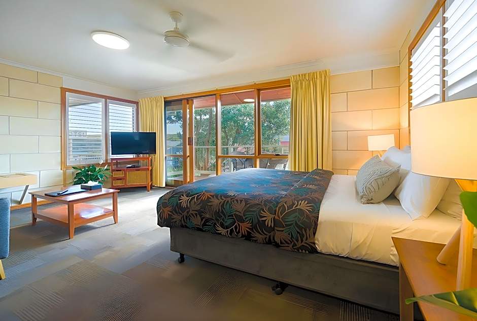 This split-level studio has 1 Bedroom upstairs and 1 Bedroom downstairs and features a kitchenette, lounge and dining area.
